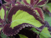 Coleus Lime Cola has large leaves with a lime center and burgundy edge. It can be grown outside or in a container inside and is hardy to zone 11. It is one of the modern shade and sun coleus hybrids that will grow inside and out.