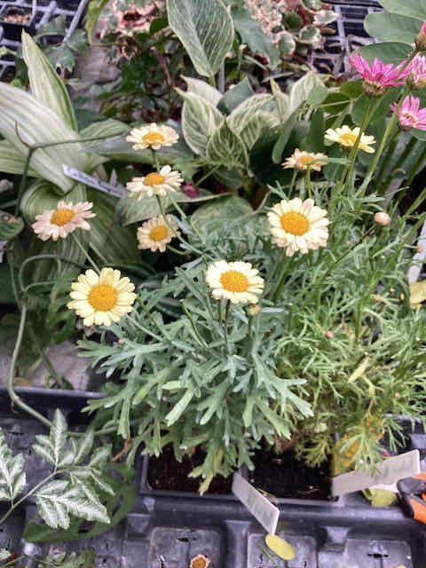 Argyranthemum Peach Daisy is a lovely addition to any container or landscape. It grows up to 2 feet tall and blossoms all summer long. Hardy to zone 10.