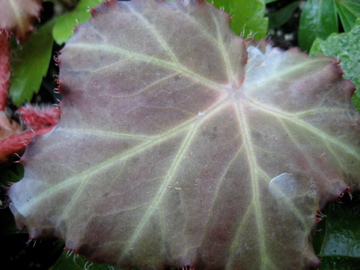 Begonia Cayuga is a rhizomatous type with medium sized leaves of substance. They have a true blueish cast which is beautiful.