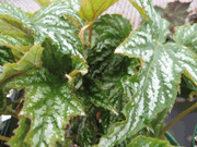 Begonia 'Charles Jaros' is a medium sized upright rhizomatous type with silver leaves and green veins. It has erect rhizomes and pink flowers. Choice.