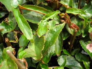Begonia George Morneau is a shrub type with dark green leaves with red fuzz. It has pink flowers often, is bushy, and is easy to grow.